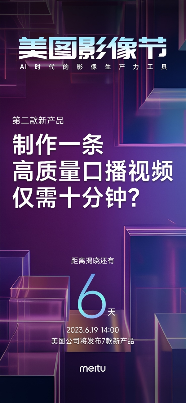 6月13日,美图公司发布第二届影像节倒计时海报,其中“制作一条高质量口播视频仅需十分钟”的表述引发外界猜想。