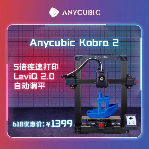 想以入门款产品的价格,体验到高速FDM 3D打印?那你的首选一定是纵维立方这款新品 Kobra 2。以0.28毫米层厚及推荐速度150毫米/秒打印,仅需30分钟即可完成小船模型!同时,自动调平系统也升级为Anycubic LeviQ 2.0 ,即在自动调平后将对Z轴偏移智能补偿,也支持自定义Z轴补偿值,满足各类用户更多元的使用需求。在细节设计, Kobra 2采用了模块化设计、4.3寸触控屏及磁吸弹簧钢平台等,令综合打印体验同样出色。