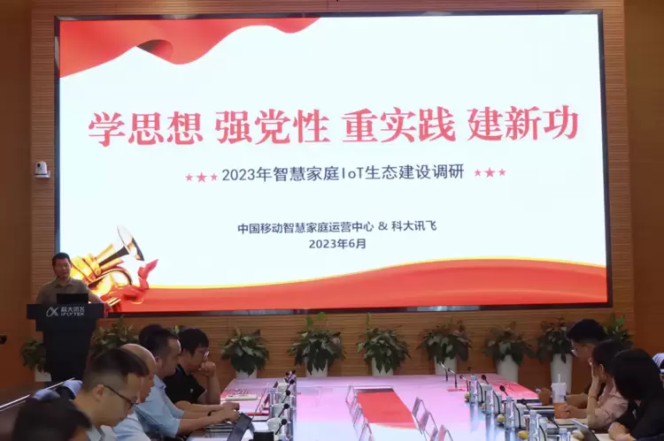 6月13日,中国移动智慧家庭运营中心(以下简称“智家中心”)党委委员、副总经理于蓉蓉带领智慧互联产品部、企业发展部、终端应用产品部、融合通信系统部等有关人员赴科大讯飞合肥总部开展2023年智慧家庭IoT生态建设调查研究,积极推进“领题破题 合力攻坚”主题实践活动的有效开展,党业融合赋能企业发展。