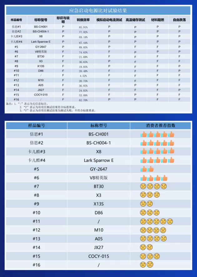 本次大会共有5大亮点,在《强制性产品认证制度介绍》环节,广东省电子数码行业协会测评中心技术负责人李振军工程师为参会人员带来《应急启动电源比对试验结果分析》的解读。据李振军工程师介绍,此次广东省电子数码行业协会测评中心对相关产品进行了比对试验,测试环节包括了模拟启动电流测试、高温储存测试、材料阻燃、自由跌落等,涵盖了产品的功效、安全等维度。按照测试标准,参与对比试验的16款品牌产品项目测试符合合格标准的用“P”来表示,而最终所有测试环节均为“P”的仅有卡儿酷与倍思。