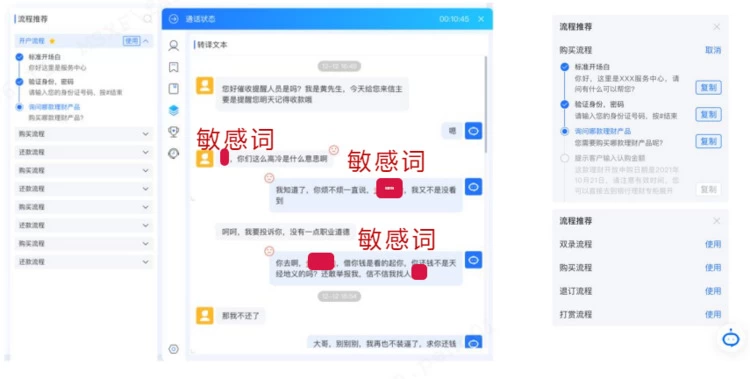 企业难以对坐席人员的服务质量及他们与客户的交互内容进行实时监控与评测,当服务过程出现问题,企业很难及时采取补救措施,可能导致客户投诉。
