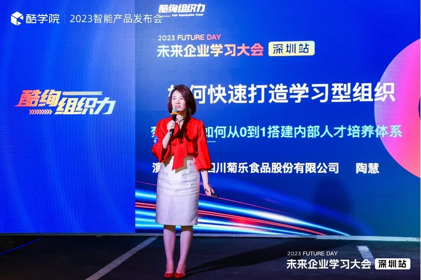不仅有功能强大的产品支撑,现场酷学院更是邀请到”2022中国数字化学习三好企业“的代表:百丽时尚、碧桂园服务、菊乐食品,各自分享了他们和酷学院共创经验,以及在数字化学习培训和人才发展,甚至包括业务数字化转型的最佳实践。标杆企业的现场分享引发现场观众的深度思考,这是一场企业之间的学习和互动,同时也是一次前瞻性的发展探讨。