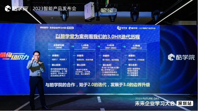 近日,酷学院特邀多位中国企业培训和人才发展领域的创领企业代表和资深专家,齐聚深圳,成功举办了"未来企业学习大会深圳站暨酷学院2023智能产品发布会"。此次活动吸引了中大型企业HR和IT负责人的广泛关注,对如何利用数字化、云技术和AI等智能化力量,推动企业学习培训的创新提效和数字化转型进行了深入和多维的探讨。活动一经发布,就收到近500人的踊跃报名,同时线上直播,当日收看近万人次。