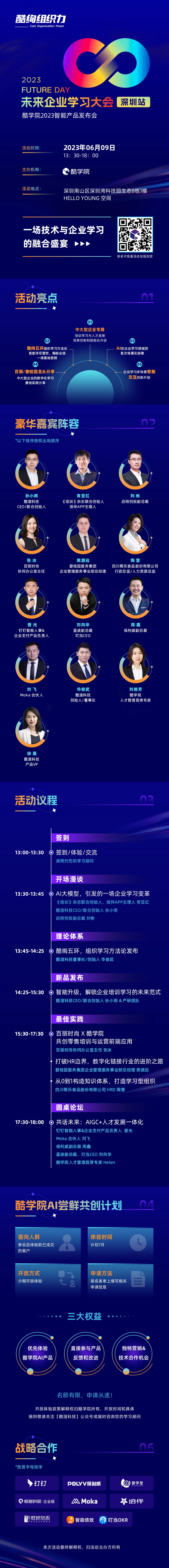“酷绚组织力|未来企业学习大会”是酷学院发起,并联合企业学习领域生态伙伴共同举办的企业学习和人才发展年度国际盛典。2022年首届举办便赢得线上观看百万和业内持续关注。2023年,酷学院再度创新,“未来企业学习大会”首次走进城市,助力当地企业学习培训和人才发展的数字化转型,支撑当地企业持续发展。