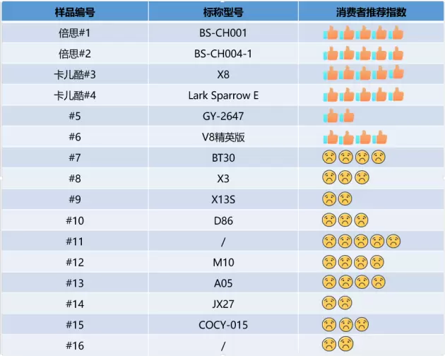 最终,根据广东省电子数码协会测评中心公布的型号和信息显示,本次检查仅有卡儿酷和倍思两大品牌旗下四款型号合格。未通过测试的型号包括GY-2647、V8精英版、BT30、X3、X135、D86 、M10 A05、JX27、COCY-015等。