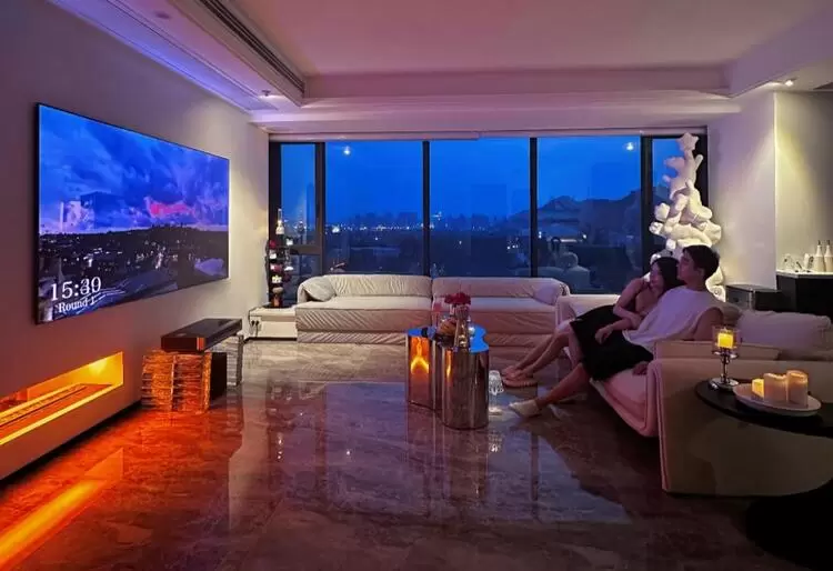 传统液晶电视的安装方式不论是座式安装还是壁挂安装,电视与电视墙之间总会有10公分左右的间隙。海信激光电视L8K则可完美解决此类问题——其配备轻巧的菲涅尔屏,能轻松入户、安装上墙,还能做到无缝贴墙,薄如画框。