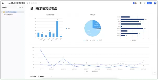不仅如此,智能文档也能实现数据可视化表达,已支持包括画册视图、甘特视图、看板视图等智能表多视图展示;还可以生成各类型图标形态,与表格数据进行实时联动,覆盖更多数据管理和消费场景,建立清晰、直观的可视化“仪表盘”。