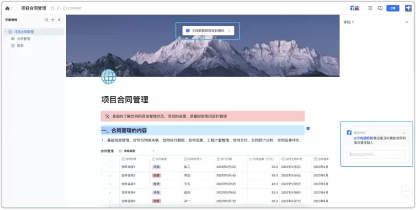在实际办公场景中,一份项目文档往往包含多线任务和不同项目成员分工。智能文档具备对文档内容模块或具体文字部分进行划词评论功能,并能@相关人员知晓反馈;针对特定内容的讨论,也能灵活设置分享单个子页面,方便相关成员直接定位查看,让团队沟通更高效。