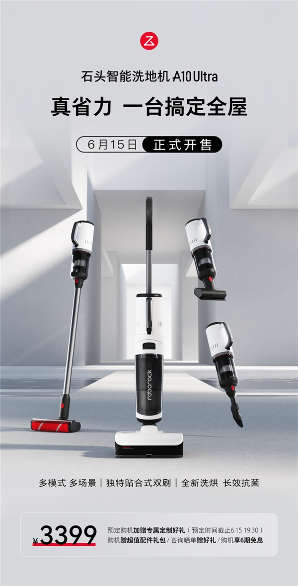 石头新品洗地机A10 Ultra开启首销,一机搞定全屋到手价3399元