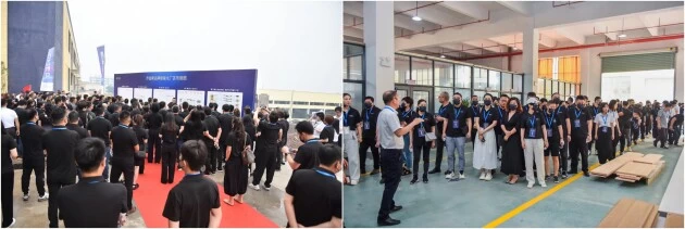 当日上午,乔金斯品牌员工携手经销商参观企业位于江山的6万平米智能生产线项目,深入感受现代生产一体化流程。