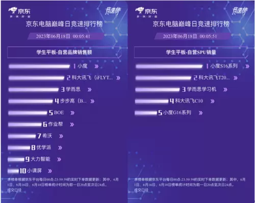 随着家庭学习需求的不断增长,学习平板成为了家长们在选购辅导工具时的热门产品之一。从品牌层面看,小度、科大讯飞、学而思拿下了学生平板自营品牌销售额榜TOP3,步步高、BOE也取得了不错的成绩,抢占了榜单TOP5其他两席。其中小度智能学习平板S16凭借AI老师一对一辅导、十六重智能护眼、智能作业辅导等功能,成功斩获学生平板自营SPU销量榜冠军,科大讯飞T20系列、学而思学习机也是一个不错的选择,分列榜单第二、第三。