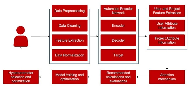 数据预处理:在使用注意力自动编码器网络之前,需要对原始数据进行预处理。这包括数据清洗、特征提取和数据归一化等步骤。清洗数据可以去除噪音和异常值,特征提取可以从原始数据中提取有用的属性信息,数据归一化可以将不同特征的值缩放到相同的范围,以便模型训练和推荐计算的稳定性。