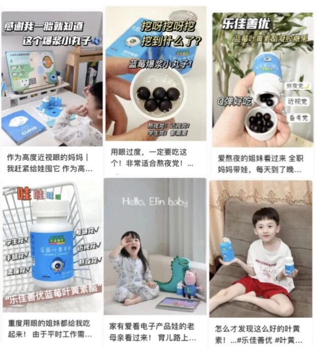 直播带货方面,在主播的详细介绍下,乐佳善优蓝莓叶黄素酯的保护和营养双眼的特点得到更深度的宣传,通俗易懂的讲解,在用户心中种下“眼睛不舒服,就吃乐佳善优蓝莓叶黄素酯”的强关联记忆。IP背书方面,借势主持人王芳、丁香医生、老爸评测等达人资源,通过短视频、直播、图文等表现方式,为产品积蓄圈层渗透力,触达更多人群,实现破圈。