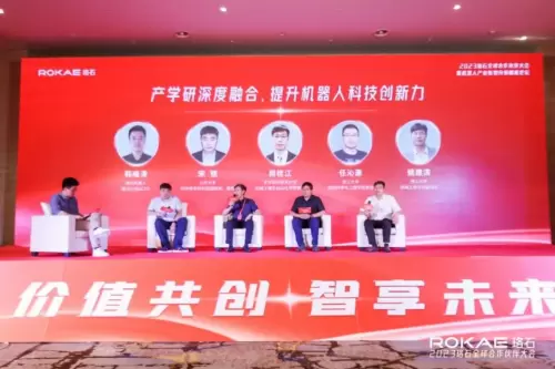 珞石机人联合创始人&CTO韩峰涛携山东大学科学技术研究院副院长宋锐教授,北京航空航天大学机械工程及自动化学院段桂江教授,浙江大学控制科学与工程学院任沁源教授,燕山大学机械工程学院副院长姚建涛教授围绕“产学研深度融合,提升机器人科技创新力”主题展开了圆桌讨论,专家们各抒己见,就机器人+大模型的落地与未来、产学研融合创新的经验教训等话题发表了个人观点与看法。