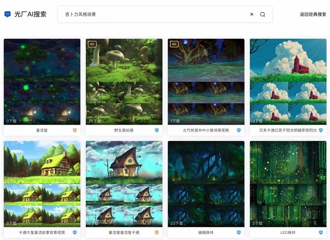 在光厂的经典搜索中,需要提取准确、精炼的关键词来进行素材搜索,但当关键词过多或不够精确时,可能会出现搜索结果少甚至无结果的情况。