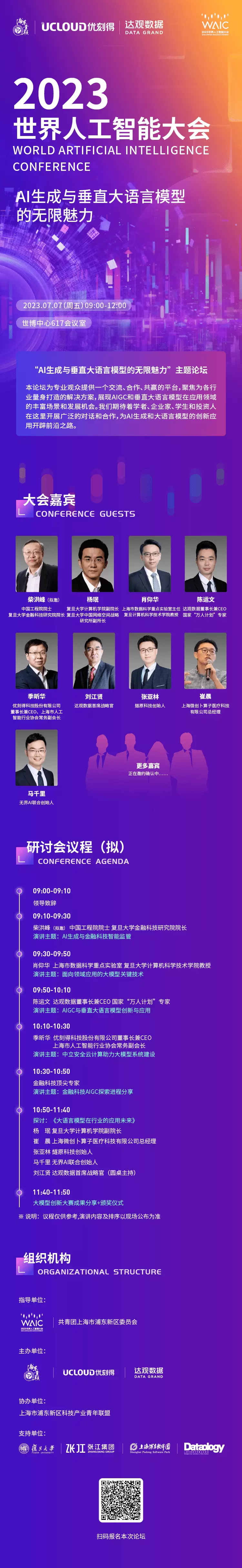 7月7日,2023 WAIC“AI生成与垂直大语言模型的无限魅力”主题论坛,期待与你不见不散!