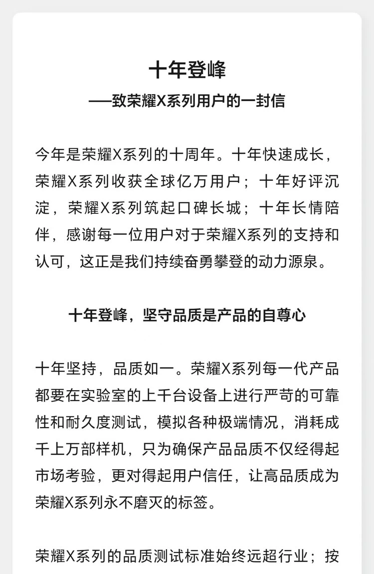 用品质和体验与用户交朋友,荣耀X系列迎来十周年