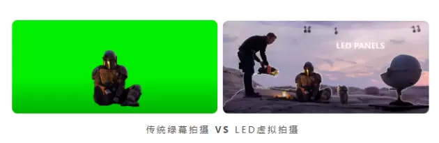 《星球大战》衍生美剧《曼达洛人》是最早大规模使用LED屏取代绿幕的作品之一,也引起了观众们对于虚拟制作技术的兴趣。而虚拟制作最重要的环节,就是要用LED背景屏幕来取代绿幕背景,营造出一个逼真的拍摄场景。