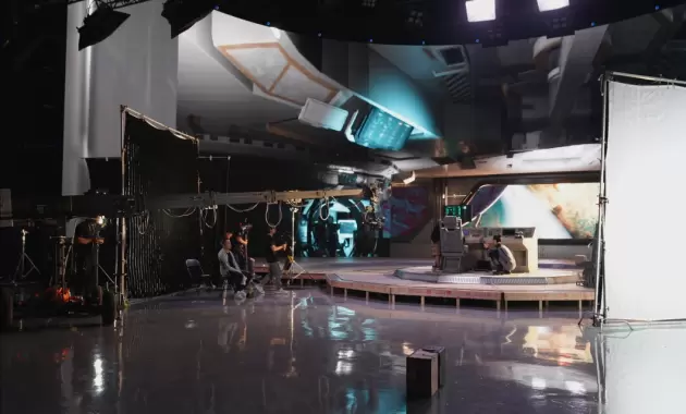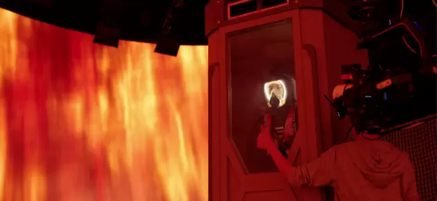 它创造了一个沉浸式的拍摄场景,摄影师可以像拍摄真实的物体一样取景,演员能与虚拟可见场景直接互动,与传统的空旷绿幕舞台相比对演员更友好,能使其快速入戏,演绎角色。