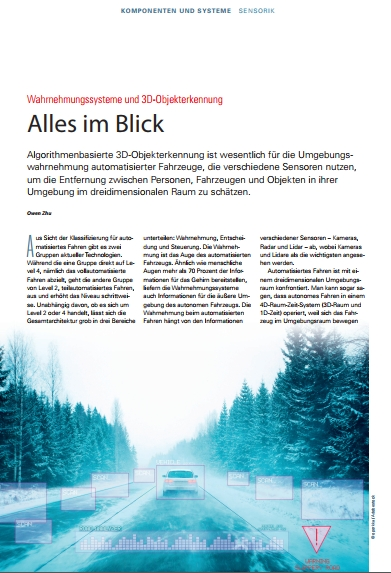 近日,德国专业汽车行业杂志HANSERautomotive就浪潮信息算法团队在自动驾驶领域所取得的核心突破,进行专题署名文章报道“Wahrnehmungssysteme und 3D-Objekterkennung Alles im Blick”(《感知系统和三维物体识别,一切尽收眼底》)。针对AI感知技术对于自动驾驶产业化落地的变革式意义,《HANSERautomotive》文章指出,“3D目标检测作为自动驾驶领域至关重要的核心任务,面向强大的环境感知,先进的AI算法及融合架构感知技术,为实现高鲁棒、高精度的目标检测提供了至关重要的信息输入,平台算力和感知算法的效率提升与创新突破,也成为了车企发展自动驾驶能力的关键技术。”