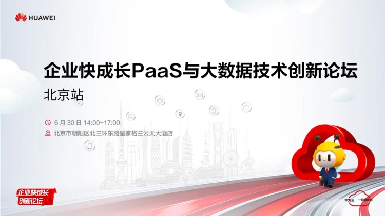 6月30日14:00-17:00,企业快成长大数据技术创新论坛北京站(北京市朝阳区北三环东路皇家格兰云天大酒店)期待大家莅临现场,共话企业数字化。未来华为云企业快成长技术创新论坛还会陆续在全国各地开展更多活动,敬请关注。