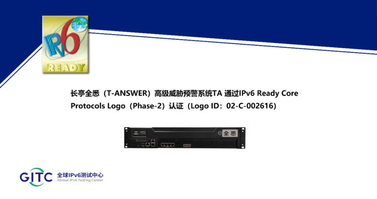 - 长亭全悉(T-ANSWER)高级威胁预警系统TA通过IPv6 Ready Logo认证