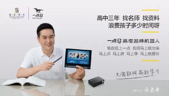 为了让更多的学生能尽快接触到先进的人工智能学习产品并提高成绩,赢鼎教育为一点马提供强有力的资源支持以加快其推广。公司聘请国内最知名的营销策划专家叶茂中先生为一点马·高考名师机器人进行全面策划,对产品的名称、外观、市场定位、广告文案、广告投放方案等进行全新设计,大大提升了产品的市场竞争力。同时公司邀请著名演员张嘉译先生为产品代言,提升一点马·高考名师机器人的品牌形象。