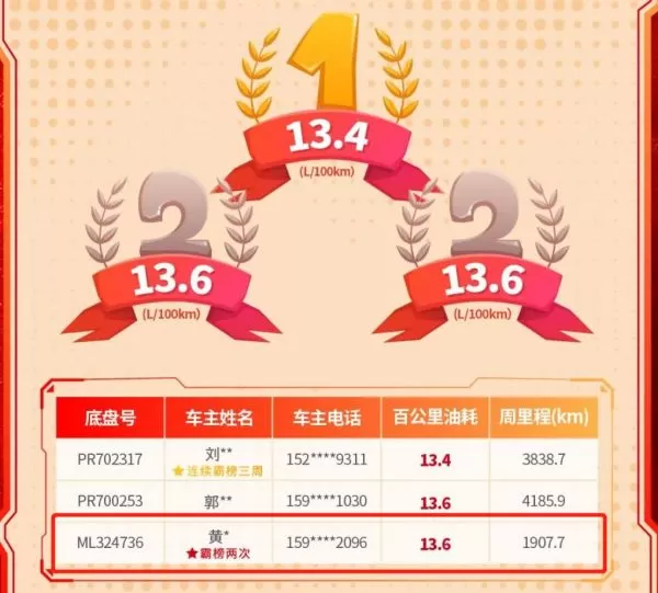 “油”我做主,“省”者为王!自乘龙卡车节油挑战赛开始以来,涌现了许多卡车界老司机,不断将节油水平推向新高。其中,来自河北衡水的黄先生凭借百公里12.8L、13.6L的超低油耗,两次冲上周节油榜单。黄先生到底有什么省油秘诀?一起来看看吧!