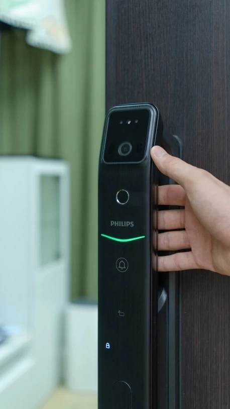 现如今,刷脸已经普遍应用于支付、认证等诸多工作生活场景,人脸识别技术的优势无需赘述。相比于需要触摸唤醒的普通智能门锁,采用人脸识别技术的智能锁真正实现了“零操作”开门。飞利浦智能锁DDL708-FVP在此基础上更进一步,通过搭载超声波传感器,当用户靠近门锁1米范围内,人脸识别模块将被即刻唤醒工作,全程无接触,解放双手,提升入户幸福感。