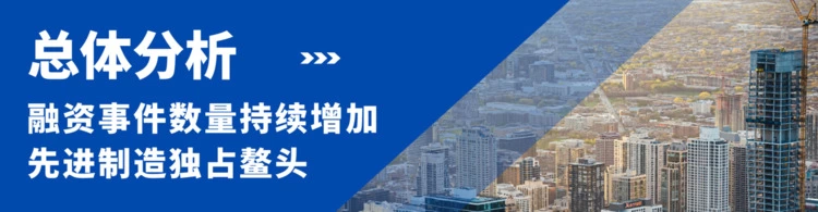 尽管上半年发生融资事件的行业高达22个行业,但只有前六个行业融资事件过百。而在先进制造业,平均每月都有13030起投融资事件发生,且从年初到年中,先进制造业的热度不断上涨,5月发生的投融资事件高达160起。