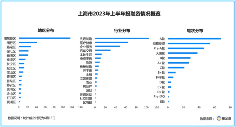 爱企查分析发现,2023年上半年(截至6月15日),上海共发生312起投融资事件。其中,亿元以上投融资事件为104起,占该市投融资事件总量的33.3%。在轮次分布上,也大多分布在A+轮前后的早期阶段,A+轮及之前轮次的融资事件数达47.4%。