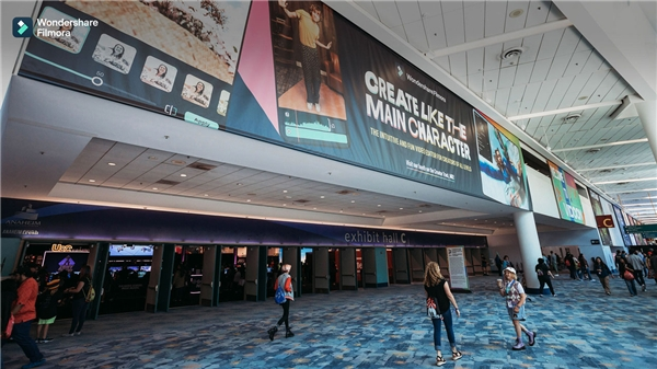 (位于展馆入口的巨幅Wondershare Filmora广告吸睛无数)
