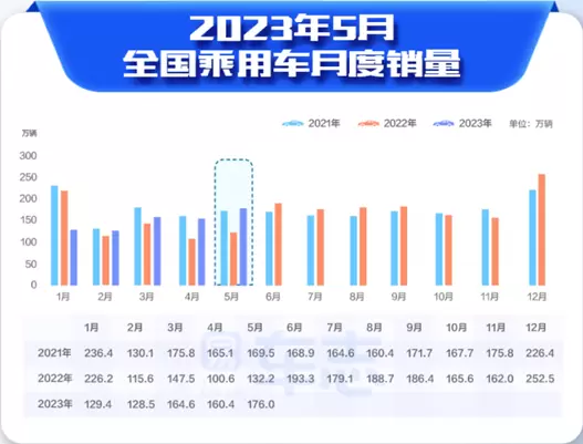 乘车市场在经过上半年的起起伏伏,终于在5月迎来了同环比双增长的喜人成绩,但这一成绩能否在6月延续则画上了问号。车购税减半政策从2022年6月1日起开始实施,对车市的刺激效果立竿见影,由此也使得去年6月的销量基数达到近几年的同期新高,因此,今年6月的市场表现将在同比上出现大幅回落,而环比表现也很有可能至高与5月持平。因此5月获将成为上半年的销量高点,能够决定2023全年销量水平的悬念将在下边年开局的七八月揭晓。