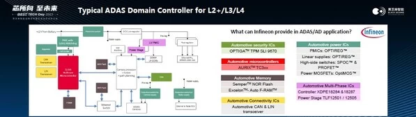 英飞凌可以为辅助自动驾驶和自动驾驶提供全方位的系统解决方案。包括功能安全等级ASIL D的微控制器,提供安全供电的PMIC芯片,以及存储、数据传递和功率等相关的芯片产品。其中,下一代微控制器TC4xx系列也成为满足电子电气架构新需求的可靠、安全、快速的处理器。