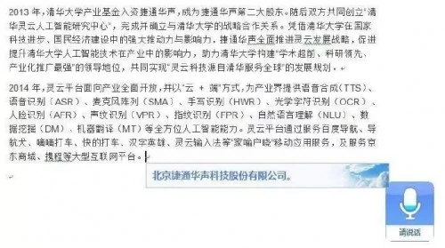 捷通华声作为全方位人工智能技术与服务的供应商,通过灵云平台向产业界开放智能语音、智能图像、智能语义、生物特征识别等全方位人工智能技术服务,致力于让每一台终端、每一台机器“能说会听、能写会看、能辨音会认人、能思考会判断”。在产业应用中,灵云结合各领域合作伙伴强大的整合能力,形成产业合力,为企业用户提供完整的智能化解决方案。