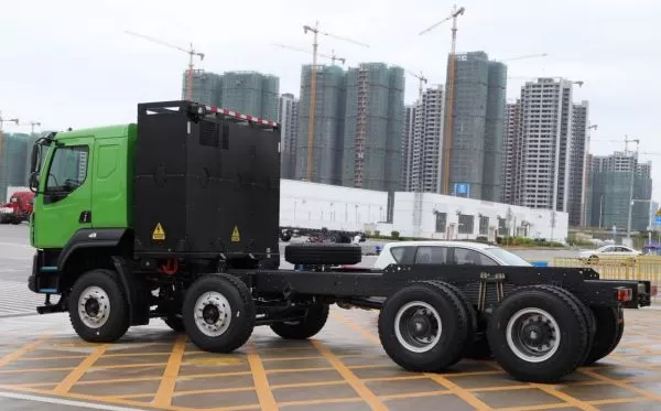 乘龙H5换电自卸车,峰值功率可达250/360kw,相当于油车490马力,与之搭配的是6挡自动挡变速箱,能够合理分配输出扭矩,行驶时机动性强,能够充分适应山区路段煤炭、灰料运输。