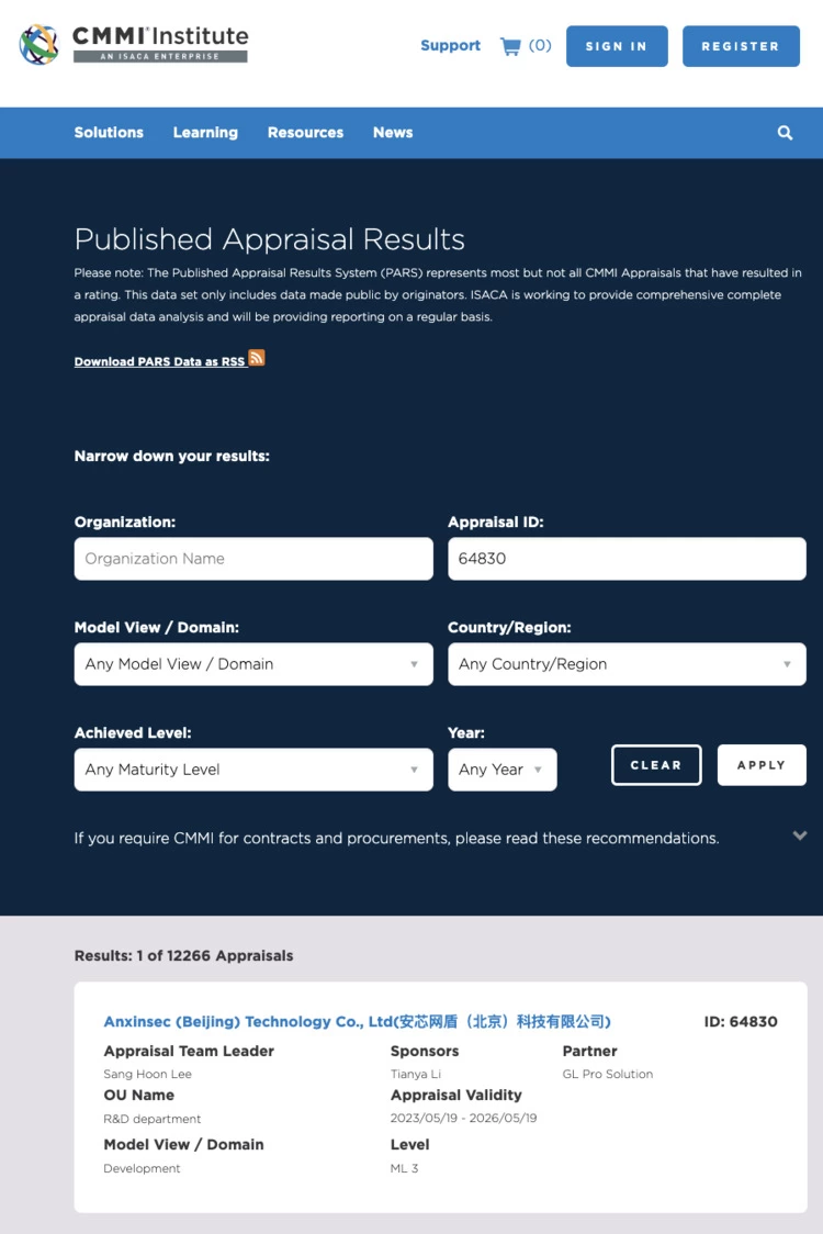 据CMMI官网查询,截止2023年6月25日,中国通过CMMI3级的企业共计7980家。此次通过CMMI3 评估,体现了安芯网盾在软件开发、项目管理、交付质量等方面达到行业领先水平。