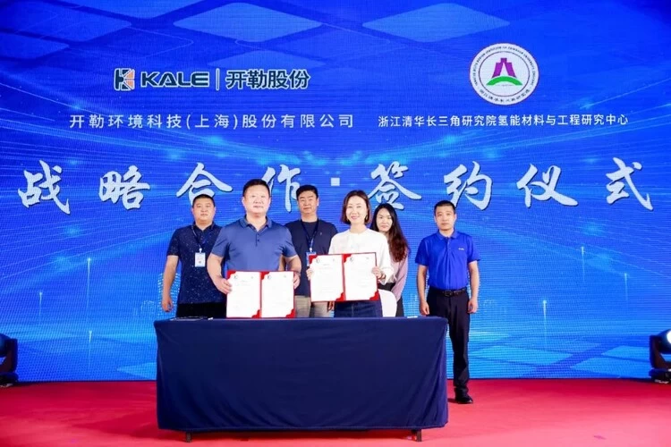 开勒股份与浙江清华长三角研究院氢能材料与工程研究中心以储能技术合作为主题,进行了战略框架协议签订仪式。随着开勒股份董事长卢小波与各合作伙伴的储能业务合作签约完成,发布会的气氛在“与君同行•储能共进| 开勒能科储能生态合作伙伴计划” 启动仪式完成时达到了顶峰,现场掌声雷动。
