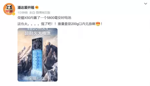 荣耀X50再曝新料:标配5800mAh大电池,续航同档位无对手
