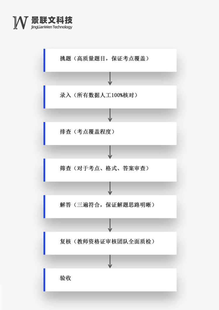 杭州景联文科技是AI基础数据行业的头部企业,从2022年9月开始着手打造高质量教育题库,共计与国内12家教育题库公司签署合约,获取了8000万道教育数据库,通过对数据库进行严格的挑题、录入、排查、筛重、解答、复核、校稿等加工环节,各环节都由专人审核,形成完整的质量保证体系。目前景联文教育题库已成为国内最大、正确率最高的教育题库。