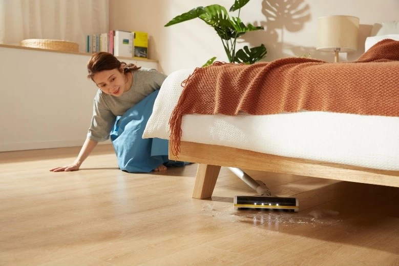 卡赫VCS 3 Cordless的机身采用直线型设计,无论向左还是向右旋转均可达到180°,移动灵活,让清洁更高效。它还可以轻松深入5.5cm的低矮家具底部,结合地刷前方的LED照明设计,让藏匿在低矮、昏暗空间的微尘也无处遁形,不留任何清洁死角。