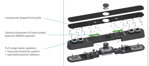 全频立体声扬声器采用升级的定向模式与优化的无源音箱,功能强劲,能够确保语音自然并拥有出色的清晰度。其配备的波束成形技术可实现多位发言人之间语音的丝滑衔接,并支持他们在房间内自由移动和对空间的随心布置。