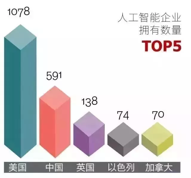 据腾讯研究院统计,截至2017年6月,全球人工智能初创企业共计2617家。美国占据1078家居首,中国以592家企业排名第二,其后分别是英国,以色列,加拿大等国家。