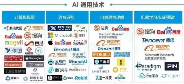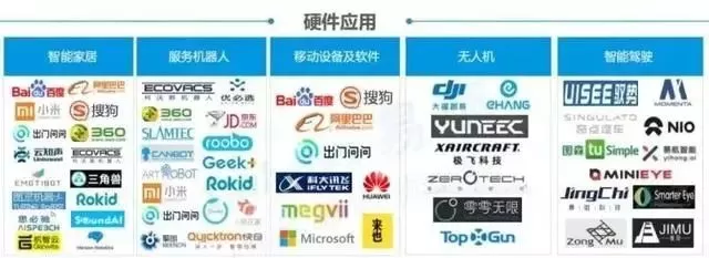 百度、阿里巴巴、小米、搜狗、出门问问、360、云知声、科沃斯机器人、Emotibot、三角兽、图灵机器人、Rokid、思必驰、声智科技、机智云、地平线机器人、毫米科技、渡鸦科技、云丁科技、西默科技、lifesmart、百芝龙智慧科技
