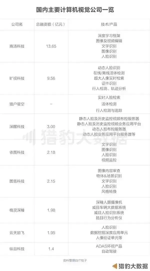 计算机视觉:通过计算机视觉算法及软硬件为客户解决人脸识别、图像识别、视频分析等需求的解决方案提供商。