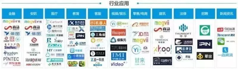 行业应用:将AI通用技术应用于金融、安防、建筑、医疗、教育、零售/电商、视频/娱乐/社交等领域,或传统行业通过研发AI技术赋能自身业务以实现降本增效、提升用户体验的公司。
