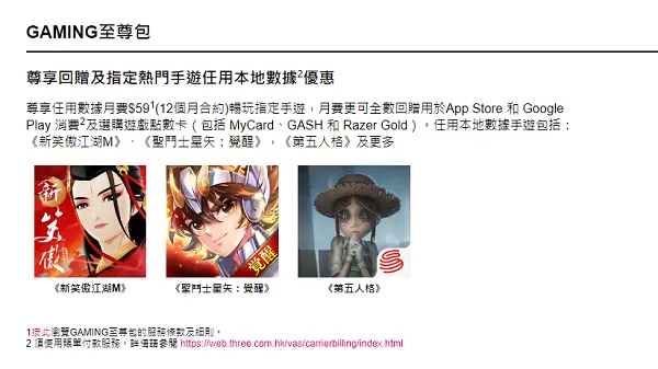 Hutchison 5G游戏加速包和股票王套餐