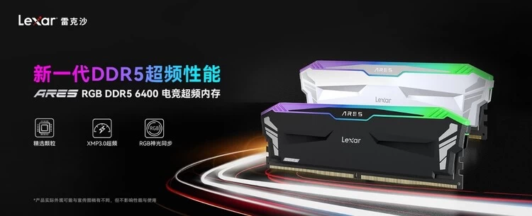 Lexar雷克沙深刻洞察超频玩家、竞技游戏玩家及PC DIY游戏爱好者对高性能主机的核心存储需求,积极布局DDR5系列产品线,顺势推出全新的高频率低时序ARES RGB DDR5电竞超频内存,支持6400MT/s CL32 16GB×2的高性能套装,为用户选购DDR5内存提供全新选择。