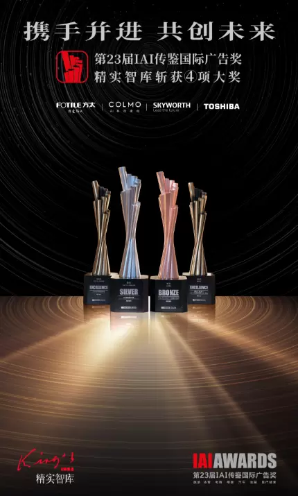 备受瞩目的第23届IAI传鉴国际广告奖颁奖典礼于北京圆满落幕,本届广告奖获奖名单也正式公布。Kings IDEA精实智库集团从1000余家企业报送的3755件参赛案例中强势突围,斩获「1银奖1铜奖2优秀奖」,一举将4项大奖收入囊中!