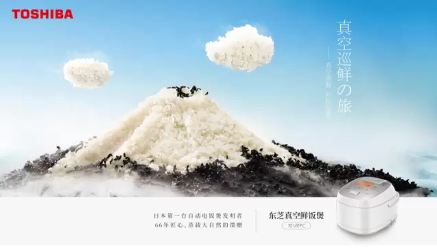 围绕#东芝真空鲜饭煲#为核心话题,传递真空焖香,锁住鲜味的“可信任”属性。连接电饭煲与家庭之间的情感,传递东芝的匠人精神,打开“可感知”的美好生活方式。通过环保理念创意海报,来去于自然中,凸显“鲜”的“可持续”自然元素,营造氛围感。